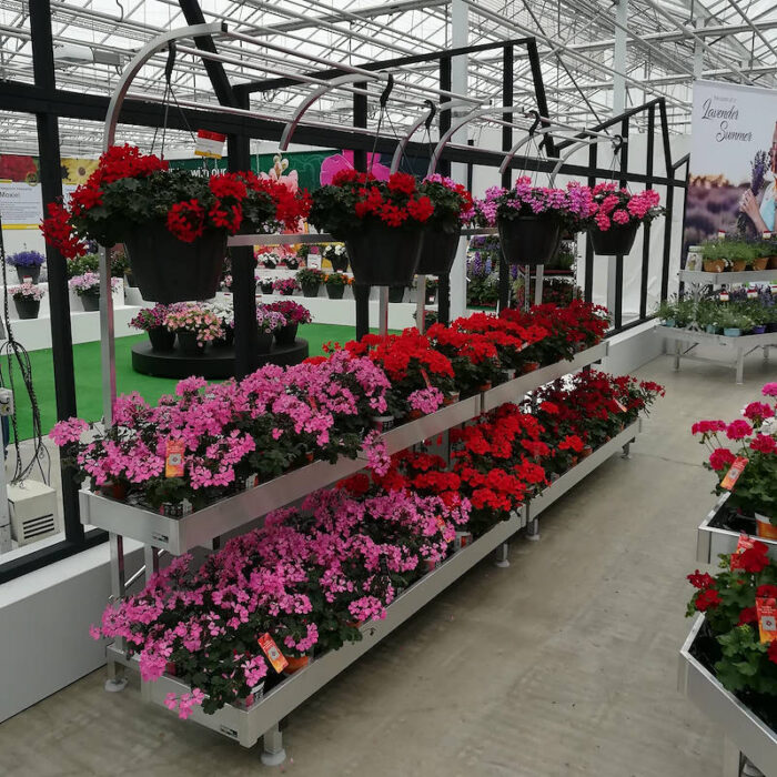 Алюминиевая настенная скамья с 2 полками и держателем для корзины. Фиксированные ножки ø 80 мм, регулируемые по высоте.