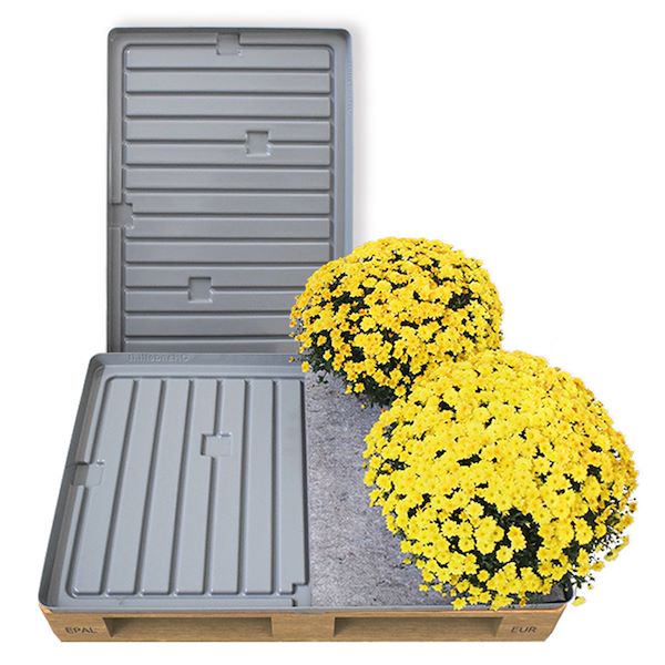 Поддон для европаллетов, разработанный группой исследований и инноваций Organizzazione Orlandelli, представляет собой прочный поддон для воды, который позволяет поливать растения и цветы на паллетах, одобренных в соответствии с европейским стандартом EPAL.